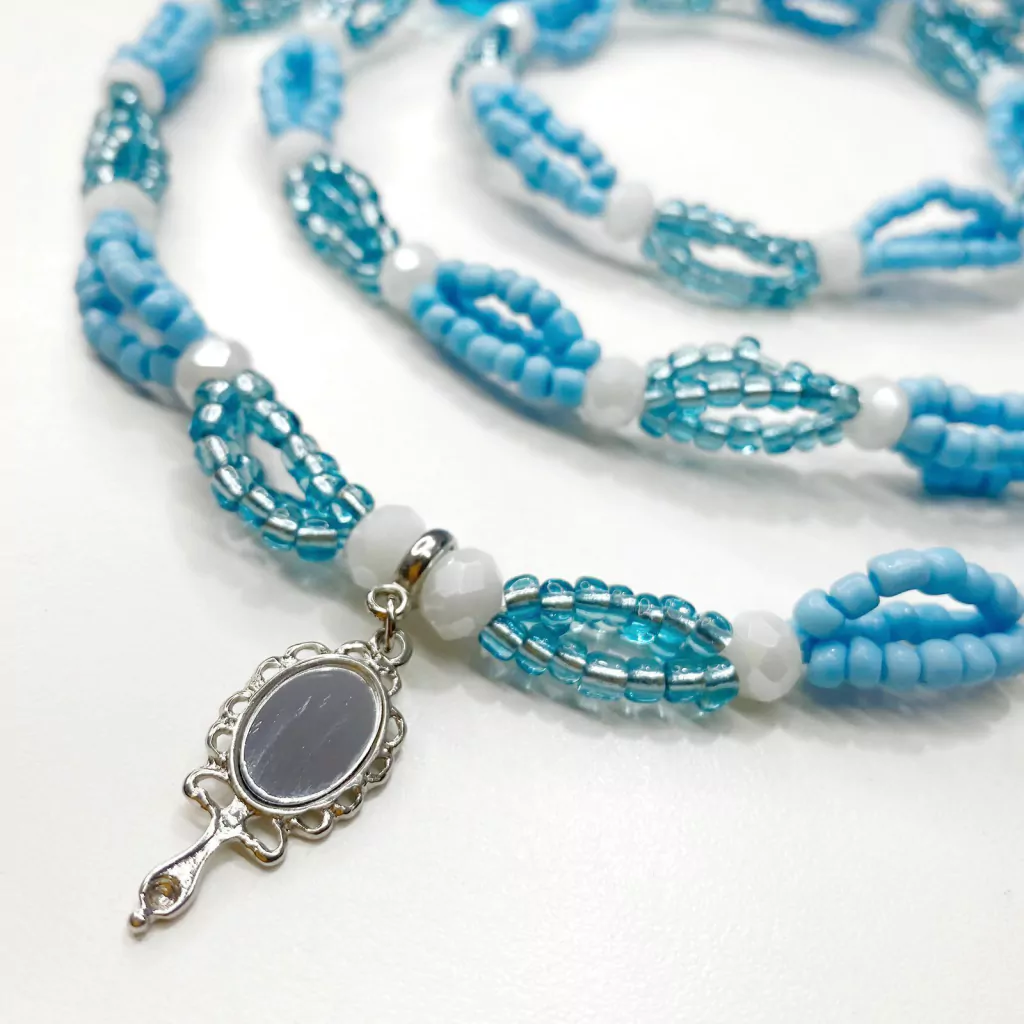 Brajá Iemanjá Em Miçanga 3 fios - azul claro com divisão de cristais 8mm branco