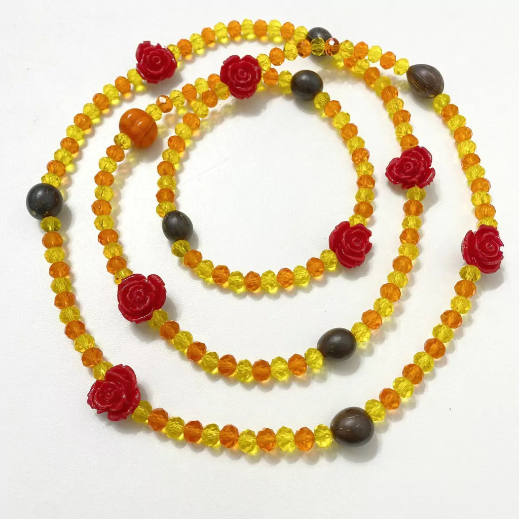 Guia de Coquinho com cristal amarelo 8mm e rosas vermelhas