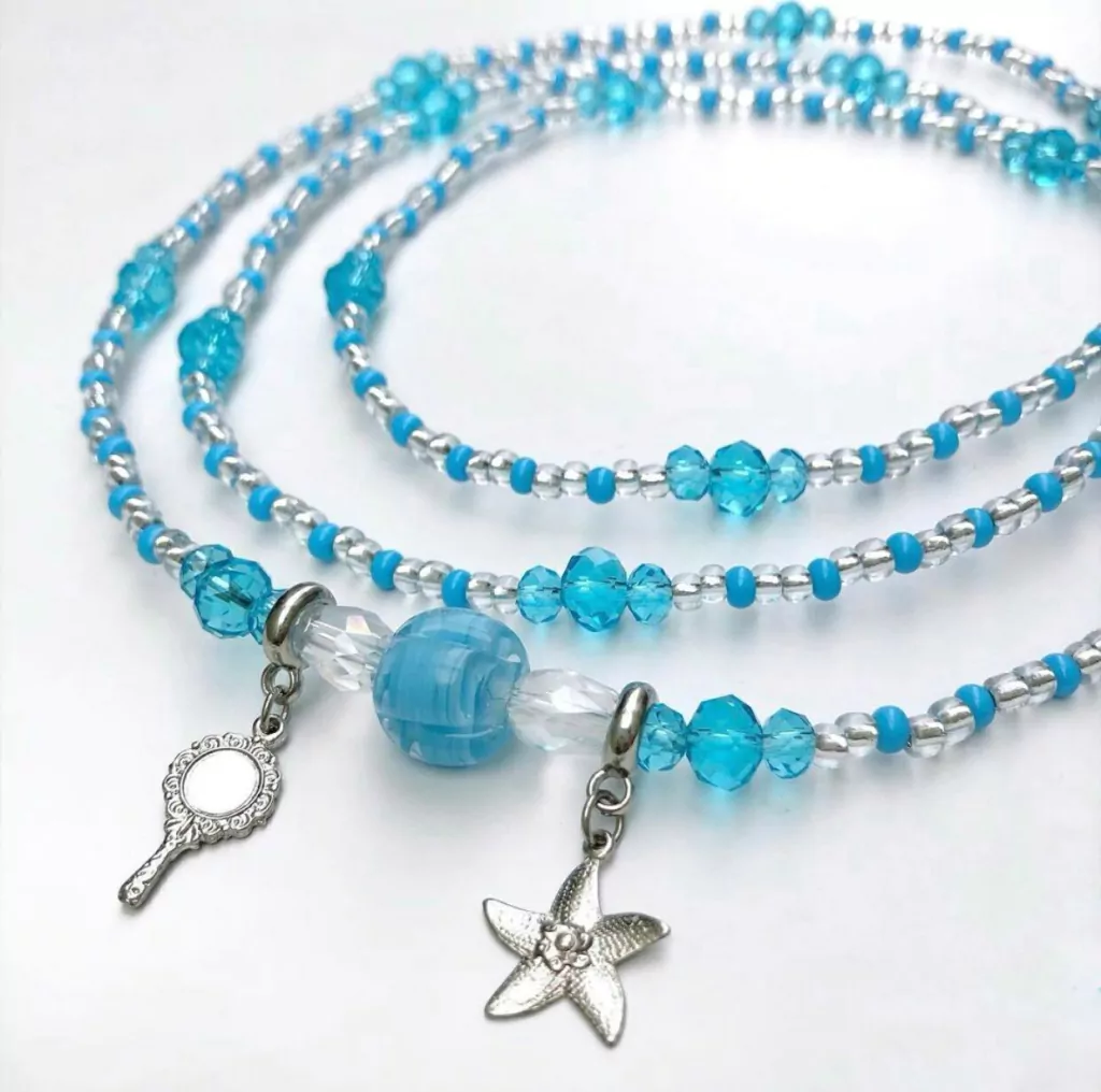 Guia de Iemanjá em miçanga com cristais e dois pingentes