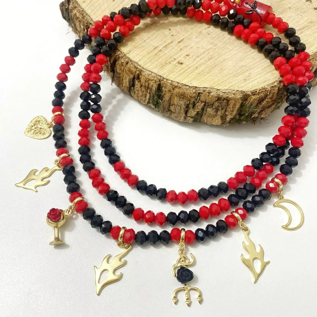 Guia de cristal 8mm para Pomba Gira com pingentes dourados